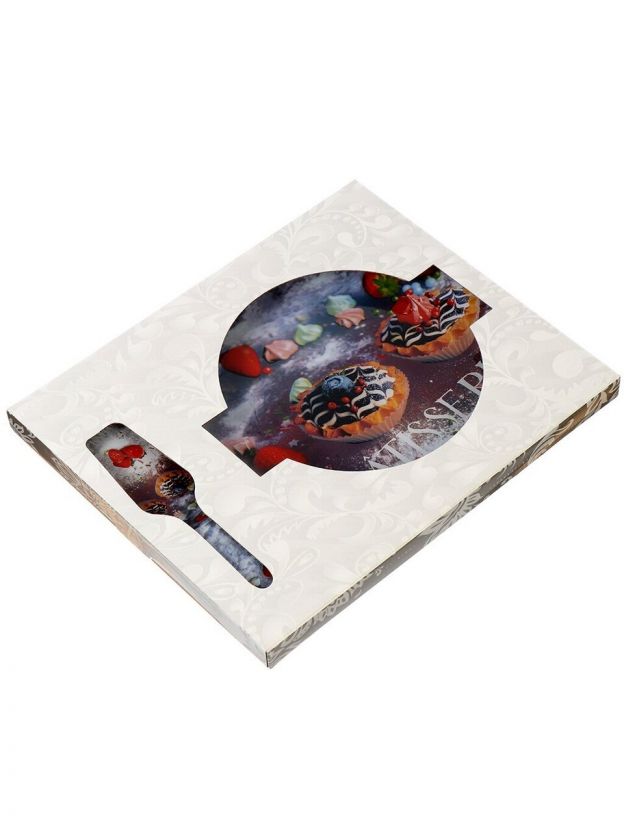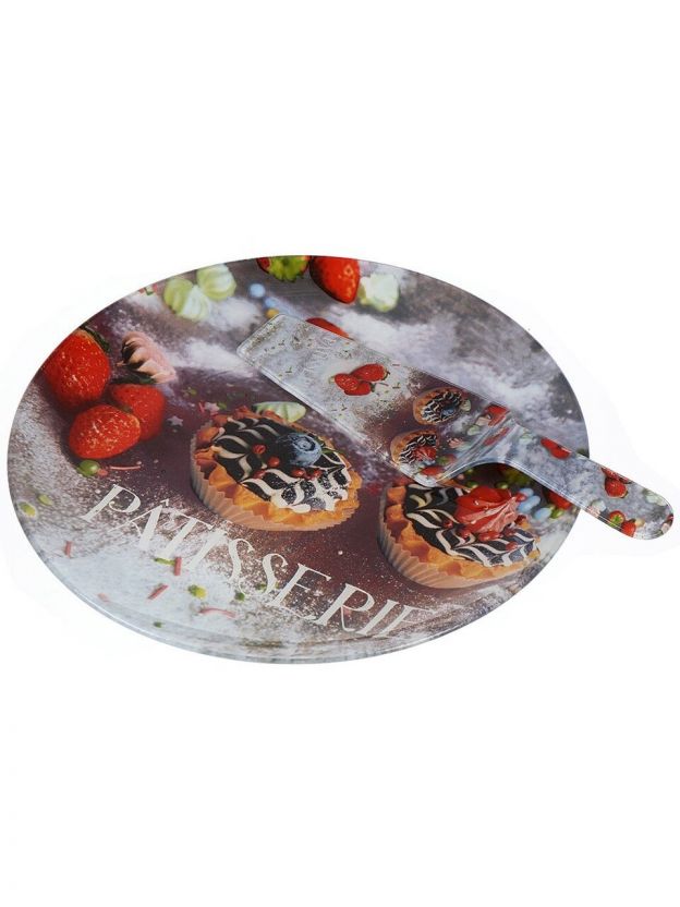 Блюдо стекло, 2 предмета, 30 см, круглое, с лопаткой, Daniks, Пирожные