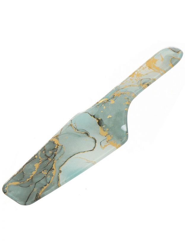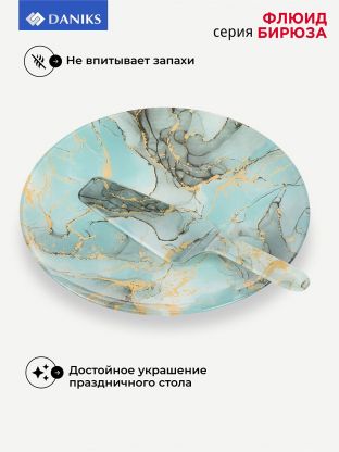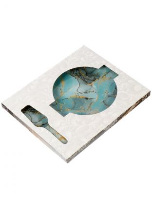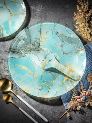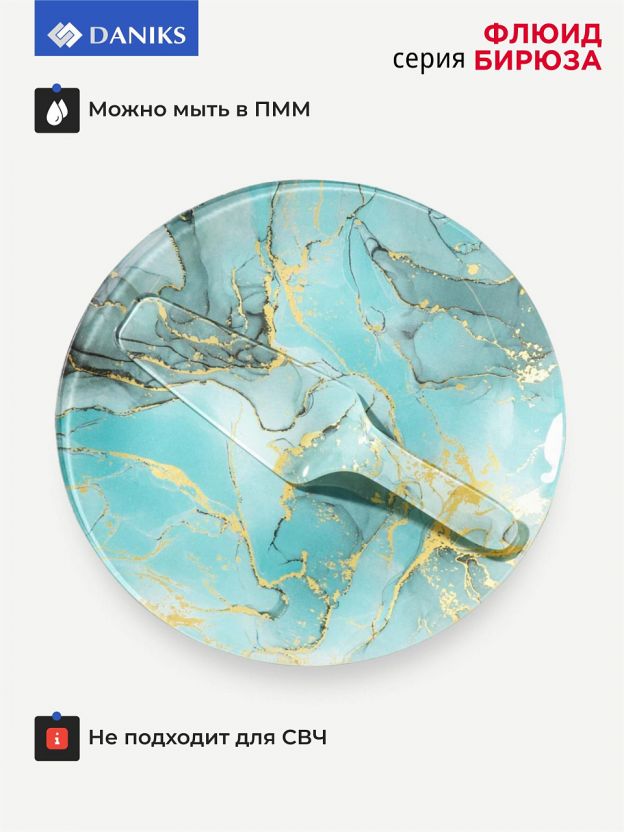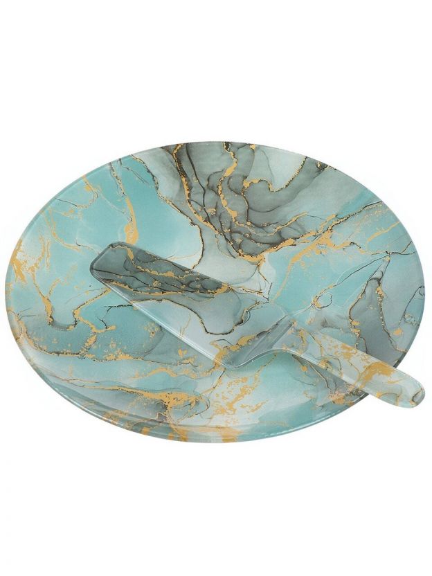 Блюдо стекло, 2 предмета, 30 см, круглое, с лопаткой, бирюза, Daniks, Флюид