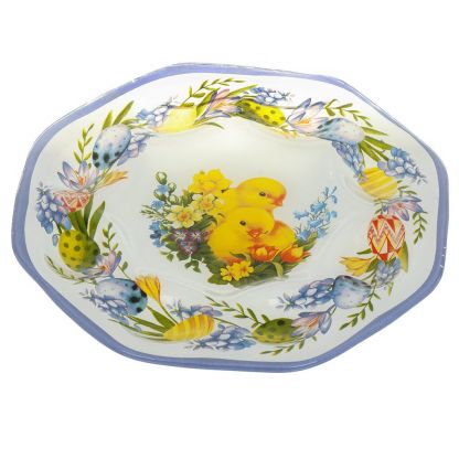 Блюдо удобно брать на дачу благодаря прочности и лёгкости, его можно мыть в посудомоечной машине, а яркий рисунок делает его отличным подарком на Пасху и другие праздники.