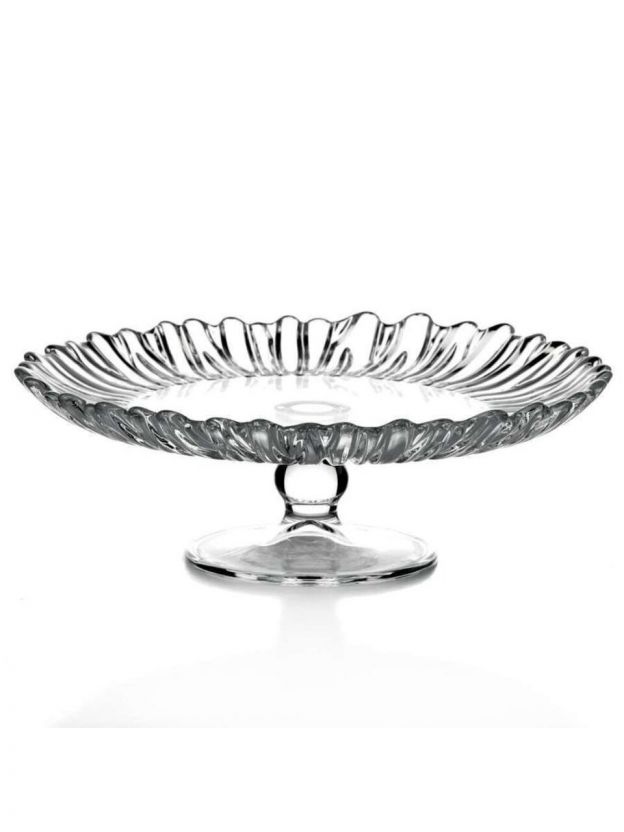 Диаметр 20,5 см, форма круглая, с бортиками и на ножке. Подходит для тортов, фруктов, закусок, нарезки.
