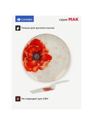 Как использовать блюдо Daniks Мак? Просто сервируйте на нём торт, пирог или закуски, а лопатка позволит аккуратно разрезать и подать порции. Не рекомендуется мыть в посудомоечной машине и использовать в микроволновке — это продлит срок службы.