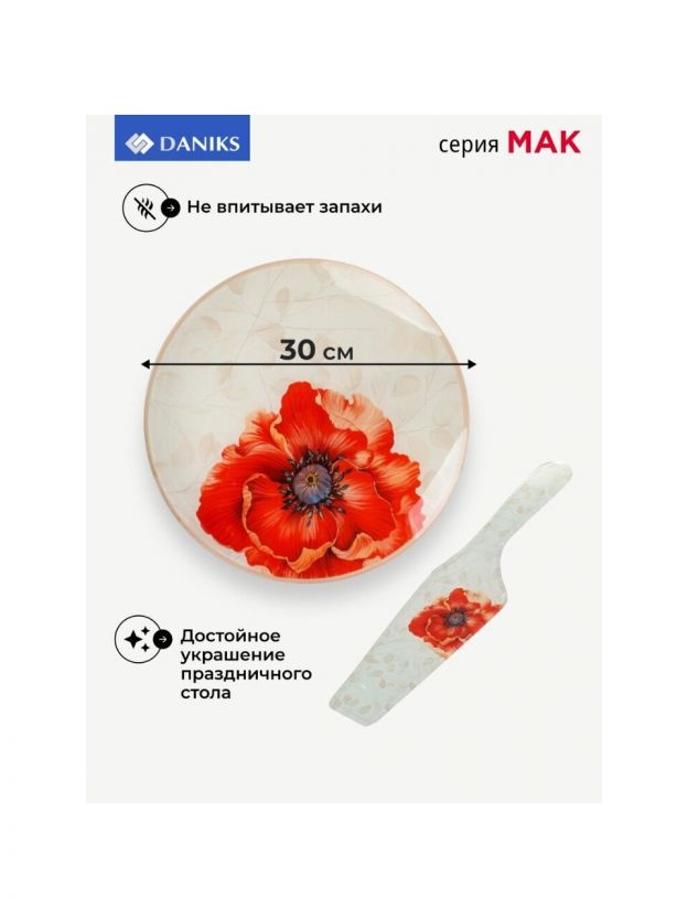 Блюдо стекло, круглое, 30 см, 2 предмета, с лопаткой, Мак, Daniks
