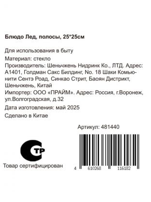 Закажите блюдо стеклянное 25х25 см «Лед полосы» — получите универсальный аксессуар для сервировки с быстрой доставкой и гарантией качества. Оформляйте покупку онлайн — выгодно, удобно, безопасно.