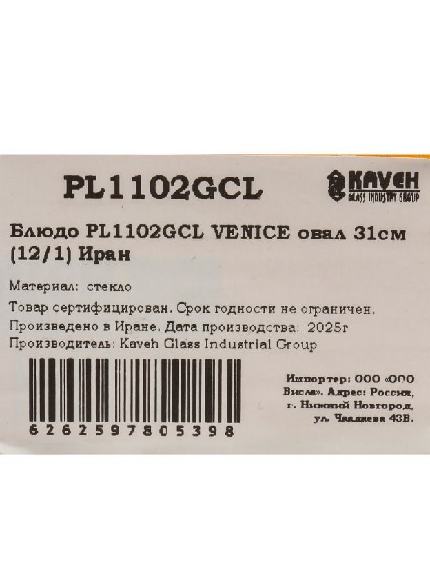 Овальное стеклянное блюдо Venice Kaveh 31 см: элегантная сервировка, прочное стекло, универсальное решение для дома и подарка.