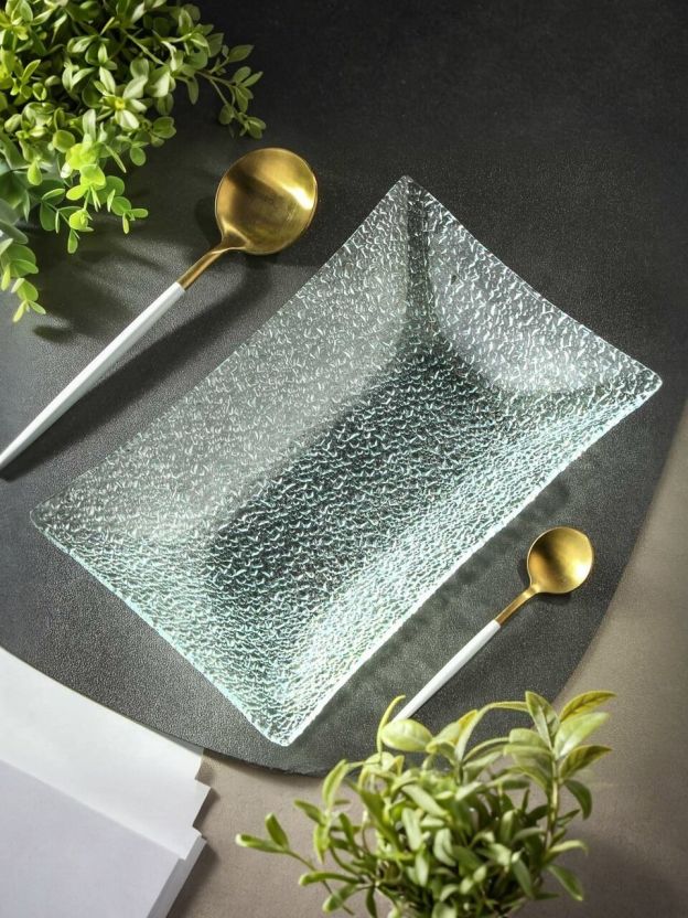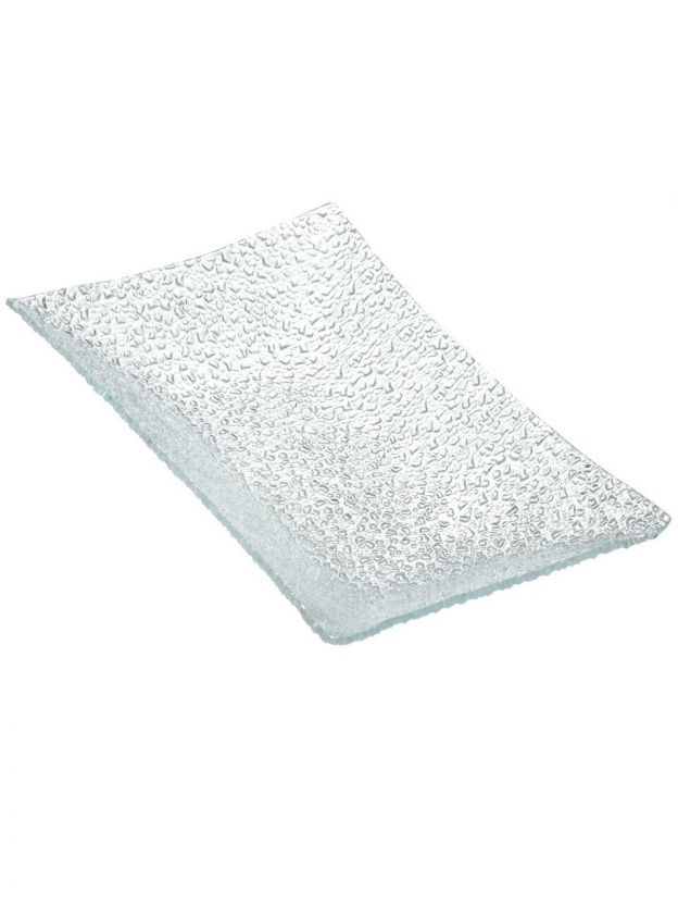 Стеклянное прямоугольное блюдо 24х14 см «Лед» — идеальный вариант: рельефная поверхность, универсальный размер, экологичное стекло.