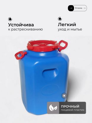 Бочка пластиковая 50 л квадратная с ручками — компактное решение для хранения воды на даче, в доме или для полива, устойчива к перепадам температуры, легко переносится.