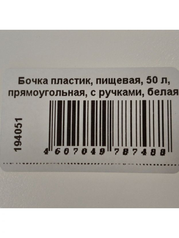 Бочка пластик, пищевая, 50 л, прямоугольная, с ручками, белая, С911БЕЛ, Гранде, Martika