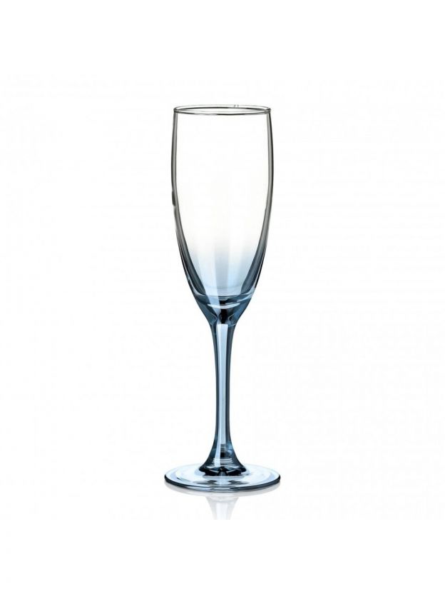 Каждый бокал рассчитан на 170 мл, выполнен в форме флютте из гладкого выдувного стекла с синим омбре-оттенком, подходит для шампанского и игристых вин.