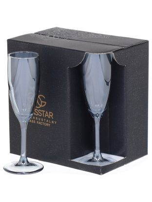 Бокалы для шампанского Glasstar Радуга Черное море 170 мл — элегантный набор из 6 выдувных стеклянных флютте для стильной сервировки и эффектного подарка на праздник.