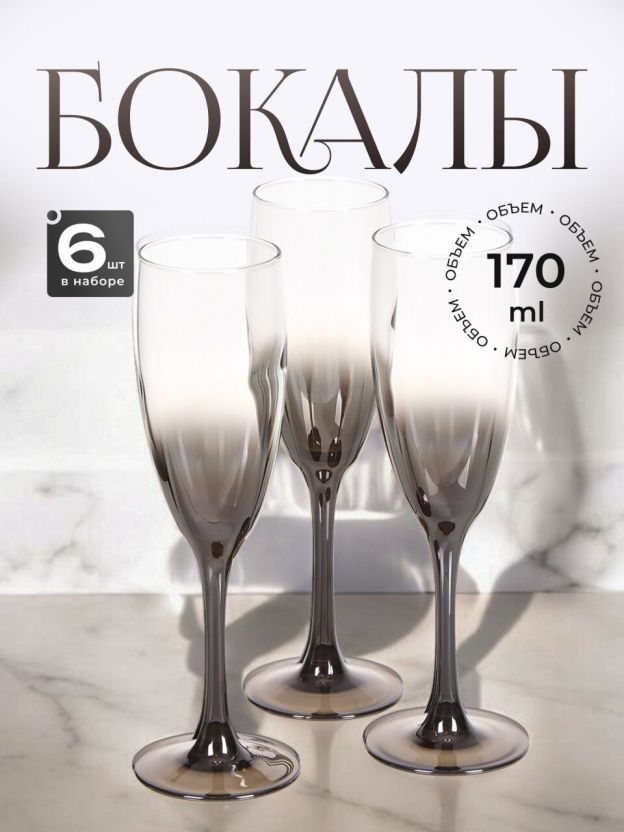 Каждый бокал рассчитан на 170 мл, что оптимально для подачи шампанского и игристых вин. Форма флютте помогает сохранить пузырьки и аромат напитка.
