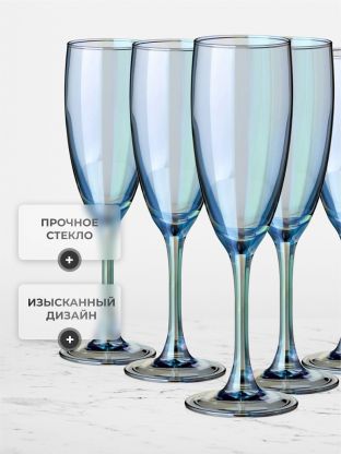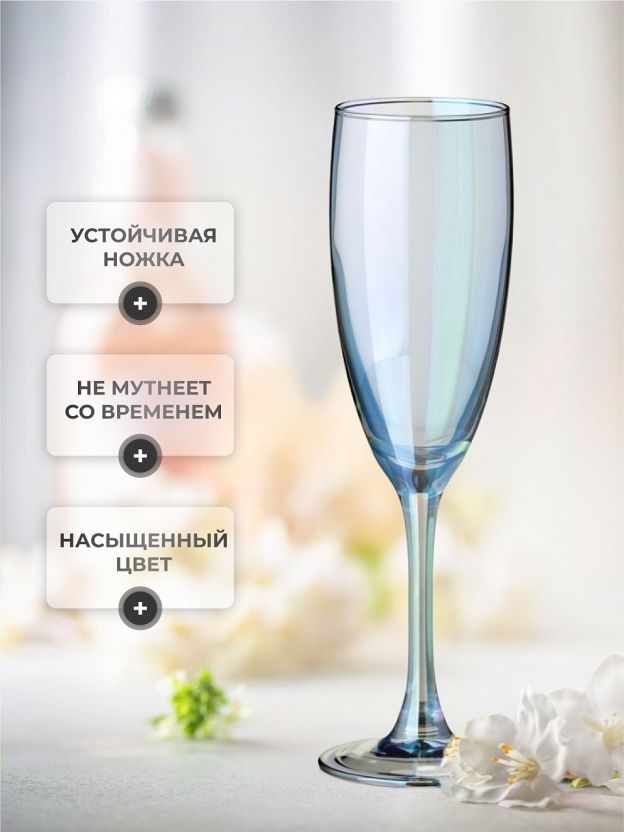 Элегантный набор бокалов для шампанского Glasstar «Васильковый 3» 170 мл — 6 шт. Идеален для праздничной сервировки и стильного подарка. Решение для тех, кто ценит эстетику и комфорт.