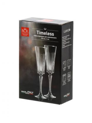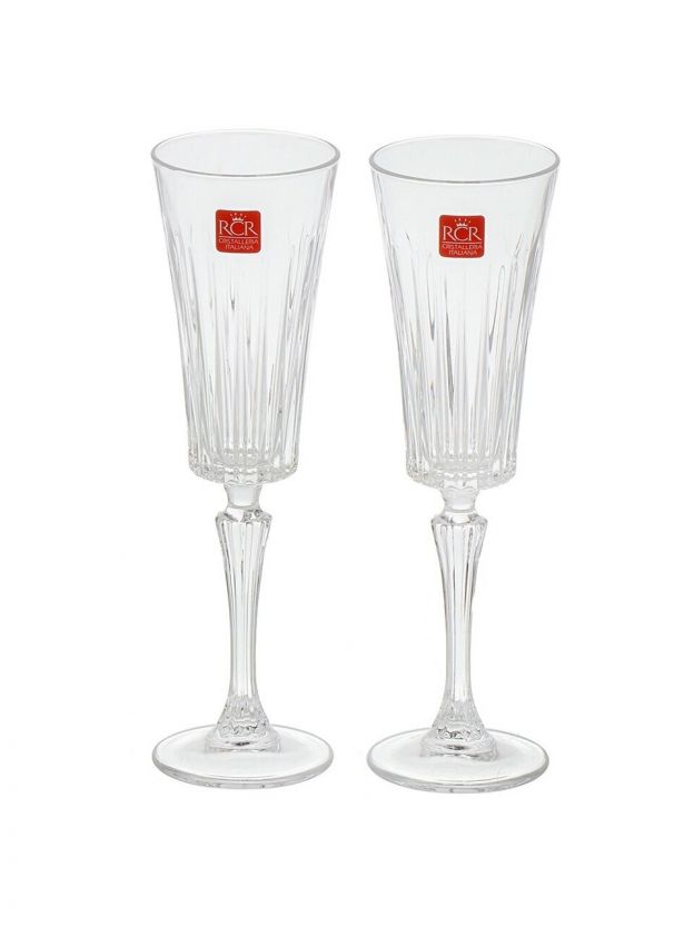 Бокалы для шампанского RCR Timeless 210 мл — стильный подарок и идеальный выбор для сервировки стола. Прессованное хрустальное стекло, набор 2 шт., Италия.
