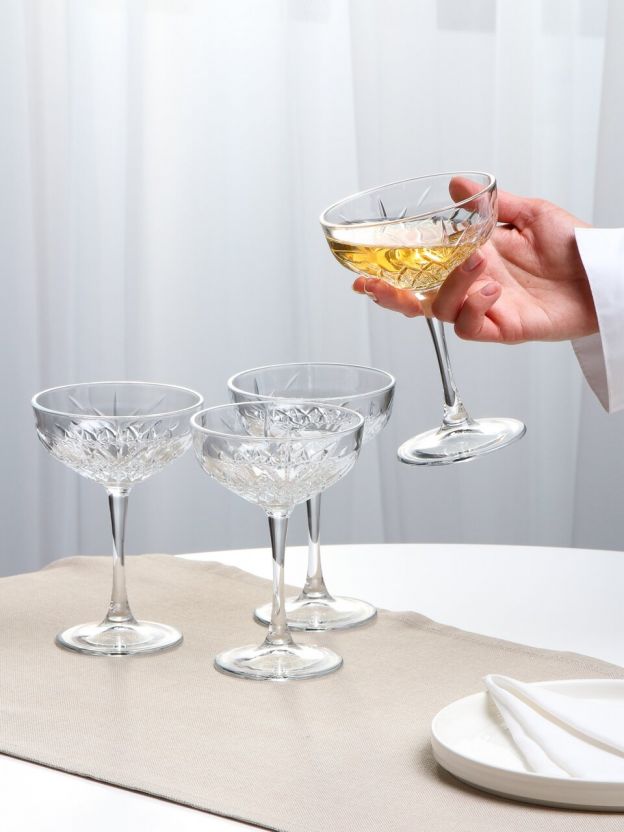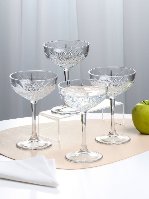Каждый бокал рассчитан на 255 мл, что оптимально для подачи шампанского и игристых вин. Стекло выдерживает стандартные нагрузки и подходит для ежедневного использования.