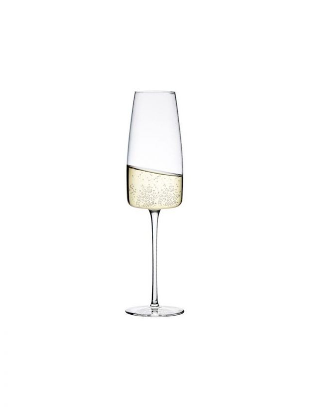 Объём каждого бокала — 340 мл, форма — флютте (узкая и высокая), материал — выдувное хрустальное стекло, что подчёркивает вкус и аромат шампанского.