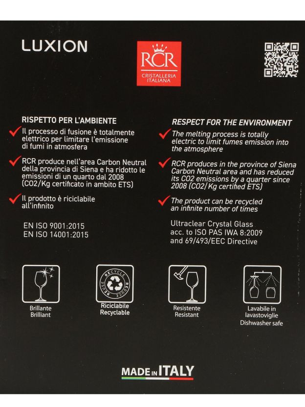 - Итальянское хрустальное стекло RCR Marilyn — премиальное качество, устойчивое к царапинам и помутнению.
