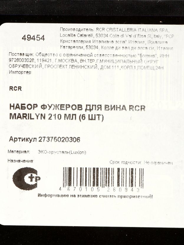 Чем отличаются эти бокалы от классических стеклянных аналогов? Хрустальное стекло RCR прозрачнее, приятнее по тактильным ощущениям и лучше раскрывает вкус вина. Коническая форма объёмом 210 мл оптимальна — бокал удобно держать, а напиток сохраняет аромат. Если вы ищете, какие бокалы купить недорого для дачи или подарка женщине на 8 Марта, Новый год или Пасху, этот набор — универсальное решение.
