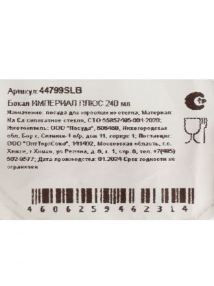 • 240 мл — оптимальный объем для дегустации, выдувное стекло прочное и подходит для мытья в посудомоечной машине;