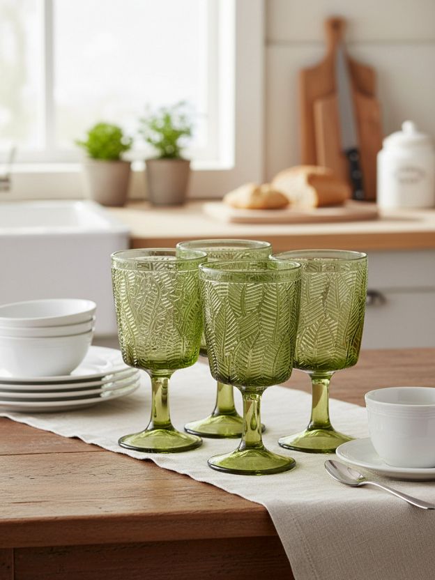 Отличие от аналогов — акцент на дизайне и долговечности: рисунок нанесён методом, устойчивым к выцветанию и мытью. Часто спрашивают, подходит ли этот набор для ежедневного использования — да, благодаря закаленному стеклу бокалы выдерживают частую мойку, в том числе в посудомоечной машине. Если сравнивать с обычными прозрачными бокалами, зелёные листья визуально выделяют сервировку и делают атмосферу более уютной.