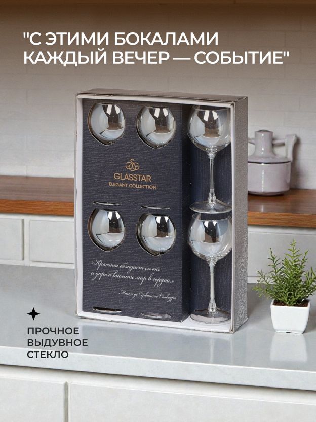 Бокалы для вина Glasstar Радуга 3 Серебро, 350 мл, 6 шт — элегантный набор для стильной сервировки и эффектного подарка. Идеальный баланс дизайна и функциональности.