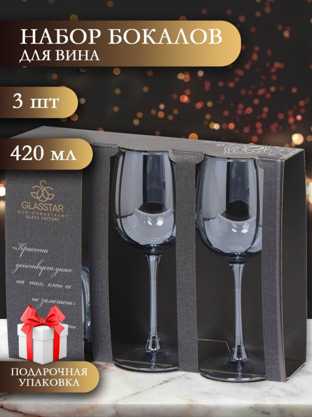 Элегантный набор бокалов для вина Glasstar 420 мл (3 шт, коллекция Радуга Черное море): стильный подарок и идеальный выбор для сервировки стола без лишних хлопот.