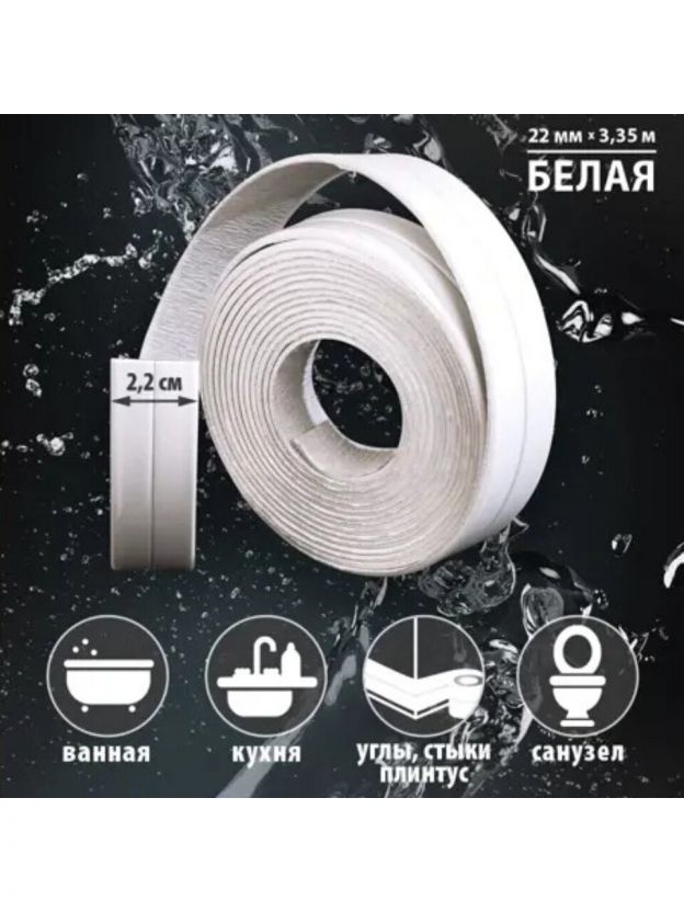 Предназначена для эстетичной герметизации стыков между сантехникой и другими поверхностями. Использовать бордюрную ленту можно в любых помещениях с повышенной влажностью – душевые и ванные комнаты, санузлы, прачечные и мойки.