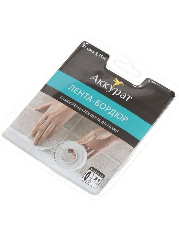 Бордюрная лента для ванн 31 мм, белая, 3.35 м, Аккурат