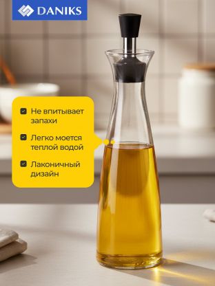 Эта бутылка идеально подходит для тех, кто ценит сочетание функциональности и эстетики в повседневных предметах. Она станет отличным выбором для людей, стремящихся к упрощению и улучшению процесса приготовления пищи, добавляя комфорт и стиль в каждое использование. Бутылка для масла Daniks B0554 – это надежный и элегантный инструмент, который стоит иметь на каждой кухне.