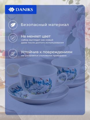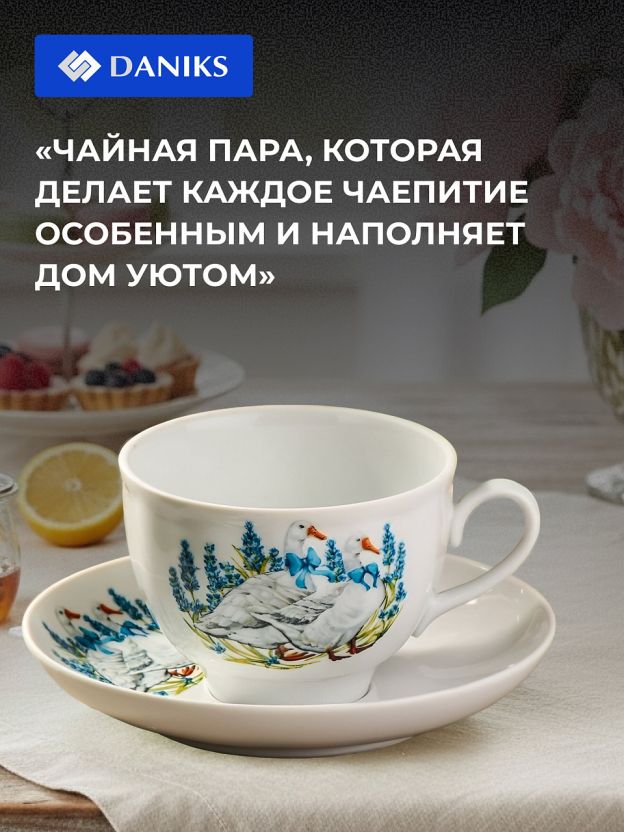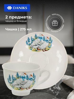 Чайная пара Daniks «Гранатовый, Гуси», 275 мл — стильный фарфор для ценителей уюта: идеальный подарок и комфорт для дома или дачи, подходит для СВЧ и посудомойки.