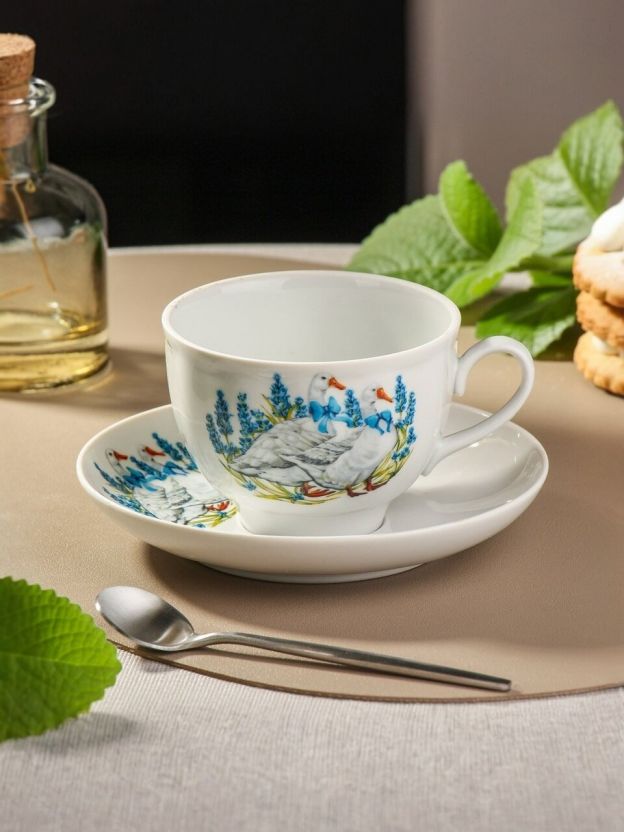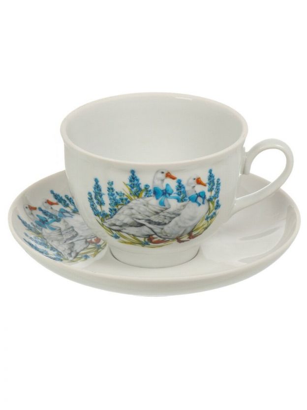 • Уникальный дизайн: фарфоровая чайная пара с оригинальным рисунком «Гуси» — украшение любой сервировки.