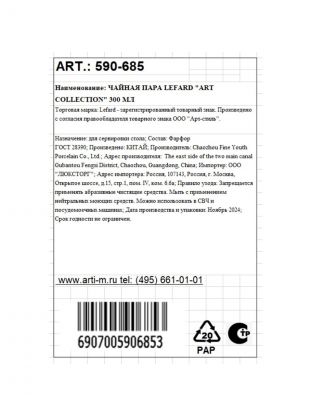 Чайная пара фарфор, 2 предмета, на 1 персону, 300 мл, Lefard, Art Collection, 590-685