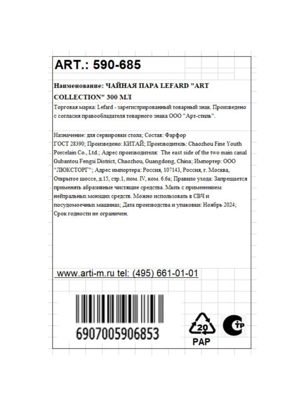 Чайная пара Lefard Art Collection — это сочетание премиального фарфора, дизайнерского оформления и практичности.