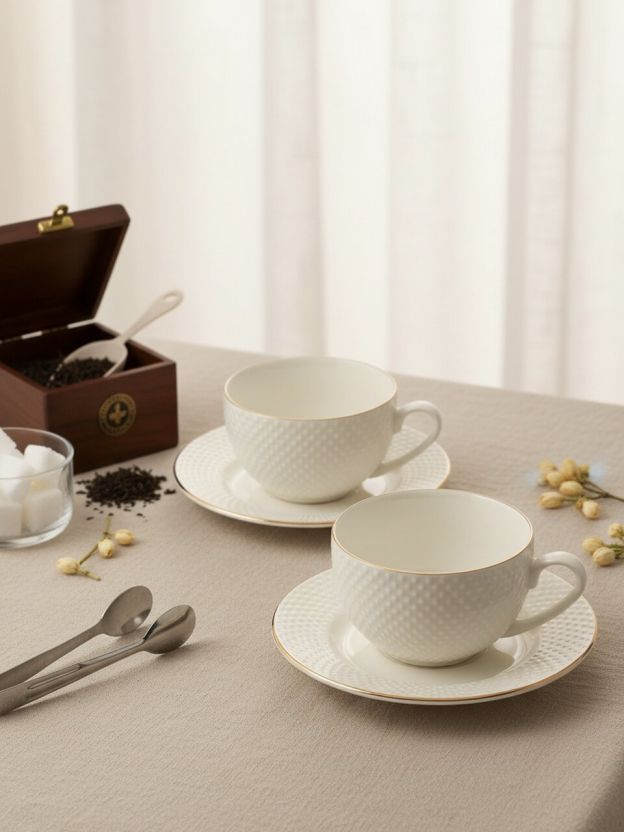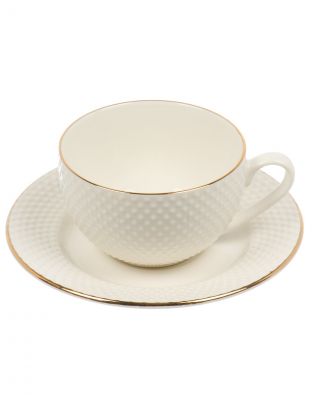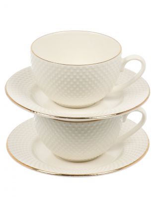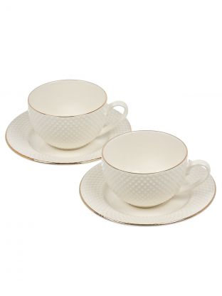 Чайная пара из фарфора Jewel Адель — идеальный подарочный набор на 2 персоны: 4 предмета, 275 мл, элегантная золотая кайма, подходит для чая и кофе.