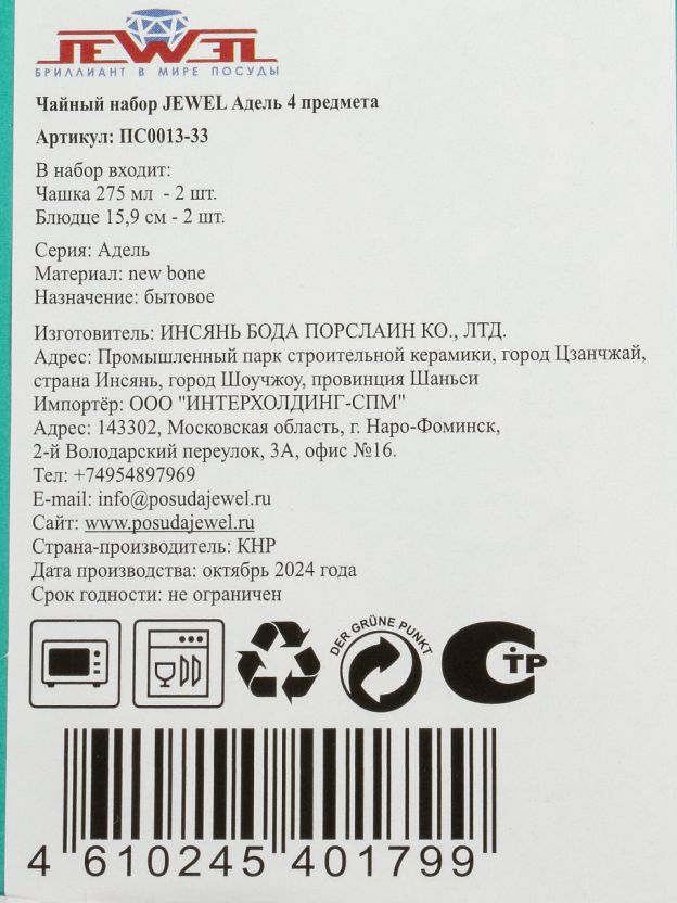 Можно ли мыть чайную пару Jewel Адель в посудомоечной машине?