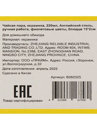 Чайная пара не предназначена для мытья в посудомоечной машине, что подчеркивает ее деликатность и ручную работу. Такой аксессуар станет не только украшением кухни, но и практичным решением для ежедневного чаепития. Уникальный дизайн с цветами и современное исполнение делают чайную пару востребованной среди покупателей товаров для дома и дачи, которые ценят эстетику и комфорт.