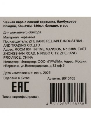 Чайная пара керам, 3 пр, 1 перс, 180 мл, Кошечки — уют для дома и отличный подарок: стильный дизайн, экологичная керамика, идеальный объём для чая или кофе.