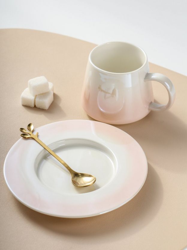 Керамика лучше сохраняет тепло, устойчива к сколам и не впитывает запахи, а перламутровый омбре-дизайн выделяет комплект среди обычных сервизов.