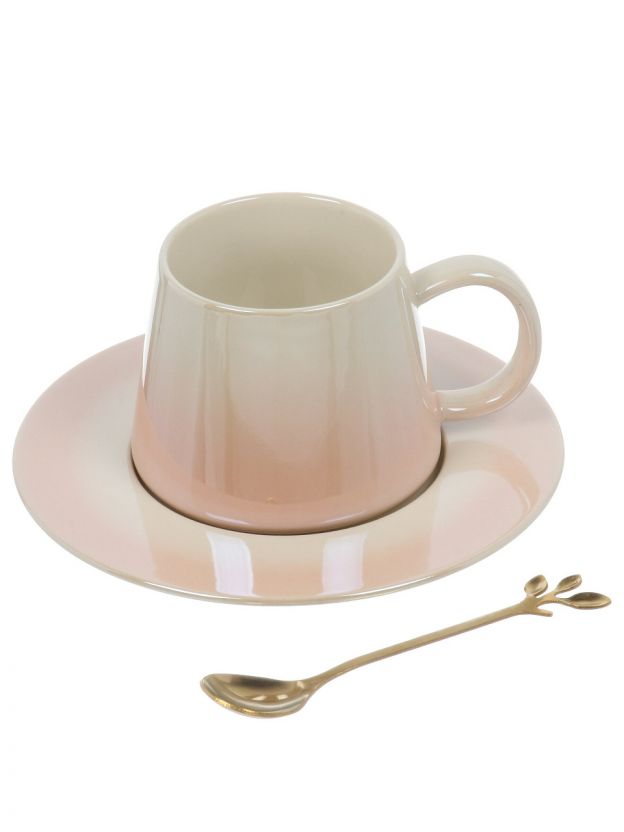 Чайная пара керамика, 3 предмета, на 1 персону, 250 мл, Перламутр омбре, B060510, в ассортименте