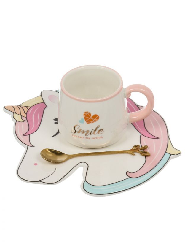 Чайная пара керамическая "Единорог", 3 предмета, 250 мл: стильный подарок и уют для вашего дома по выгодной цене.