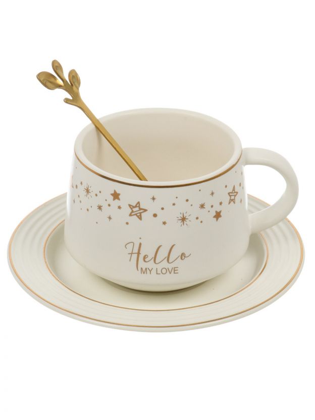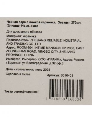 Чайная пара керамика, 3 предмета, на 1 персону, 270 мл, Звёзды, B010403, в ассортименте