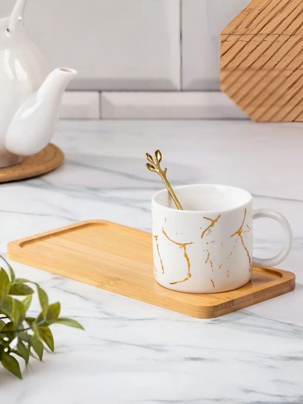 Погрузитесь в атмосферу утонченности и элегантности с керамической чайной парой "Мрамор". Этот стильный набор, состоящий из чашки объемом 280 мл, прямоугольного бамбукового блюдца и изящной ложки, станет неотъемлемой частью вашего ежедневного ритуала чаепития. Дизайн "Мрамор" добавит современности и изысканности в интерьер любой кухни или гостиной.