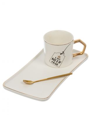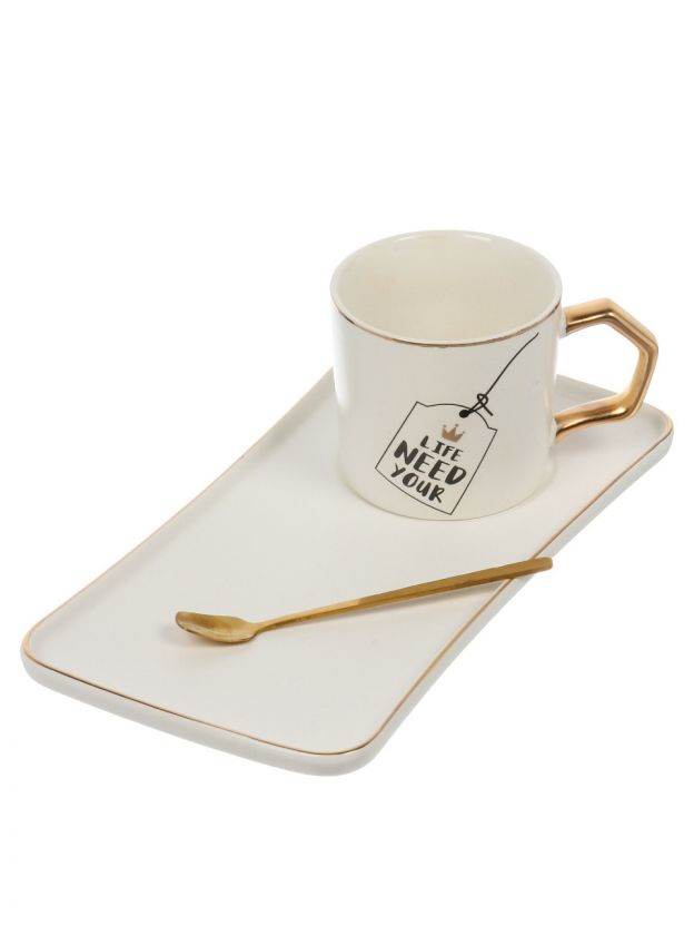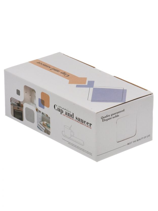 В комплекте 3 предмета: чашка, прямоугольное блюдце и ложка. Набор рассчитан на 1 персону.