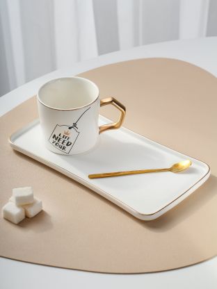 • Уникальный комплект 3-в-1: чашка, блюдце прямоугольной формы и ложка — всё для комфортного чаепития