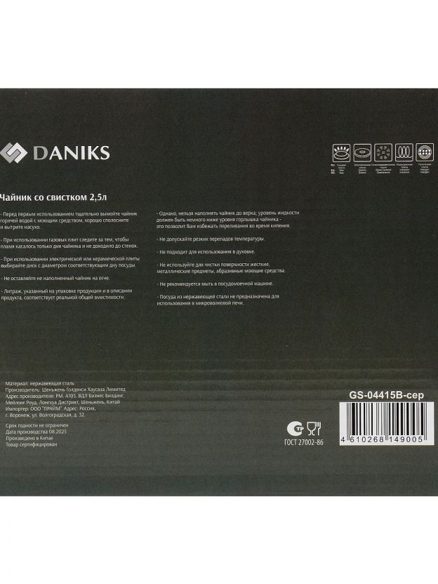 Закажите чайник Daniks сейчас — получите гарантию 12 месяцев и быструю доставку. Надёжное качество и универсальность по доступной цене.