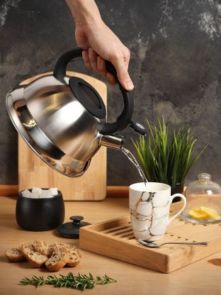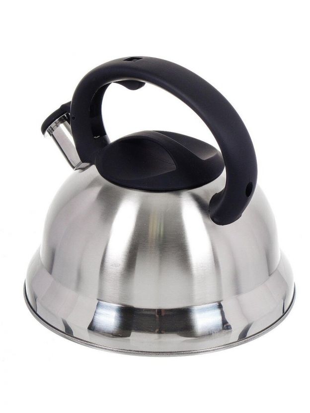 Свисток сигнализирует о закипании, что удобно при работе на кухне или если вы заняты другими делами. Матовая нержавеющая сталь не требует сложного ухода, а силиконовая ручка защищает от ожогов.