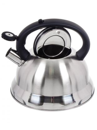 Чайник нержавеющая сталь, 2.8 л, со свистком, матовый, ручка с силиконовым покрытием, Daniks, MSY-013