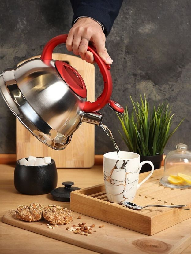 Чайник Daniks MSY-013R — это выбор для тех, кто ищет недорогой, но надёжный чайник из нержавеющей стали для ежедневного использования. Матовый корпус защищён от царапин, а эргономичная ручка с силиконовым покрытием не скользит и не нагревается — даже если вы часто кипятите воду для чая, кофе или каши. Благодаря свистку вы всегда узнаете, когда вода закипела, а объёма 2.8 литра достаточно для семьи из 3-5 человек.