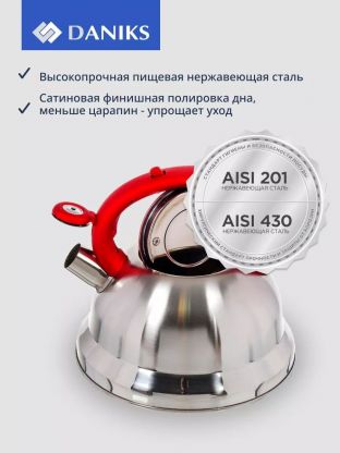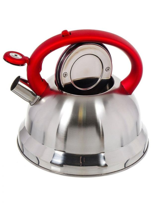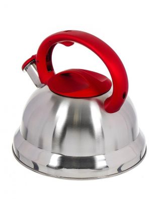 Чайник нержавеющая сталь, 2.8 л, со свистком, матовый, ручка с силиконовым покрытием, Daniks, красный, MSY-013R