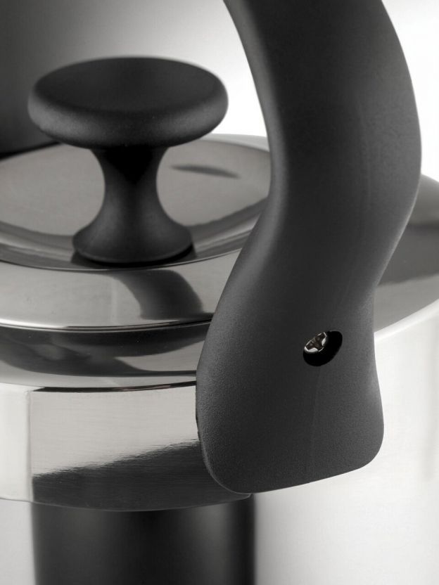 Объем — 2.8 литра, материал корпуса — нержавеющая сталь с зеркальной полировкой, ручка из нейлона, подходит для мытья в посудомоечной машине.