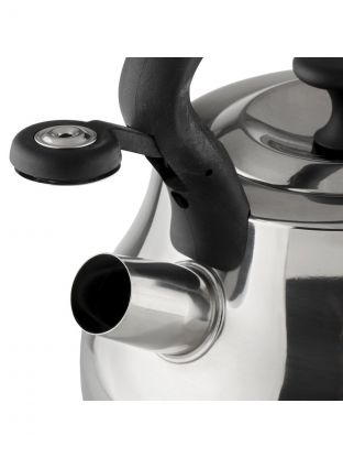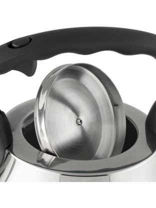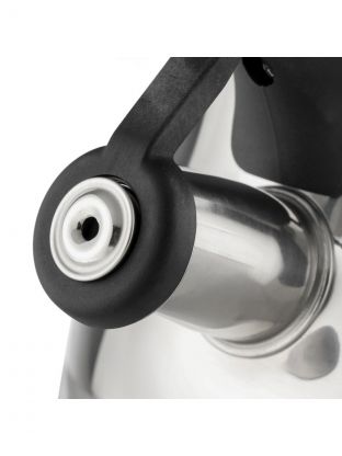 - Безопасность и комфорт — термоизолированная нейлоновая ручка, свисток для контроля закипания