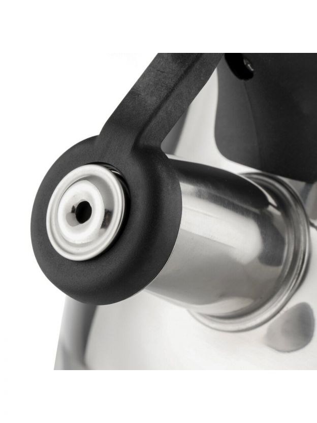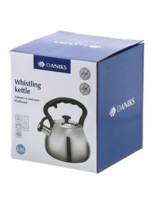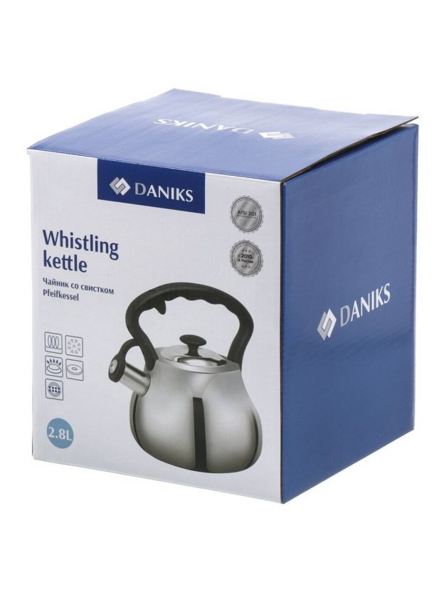 Чайник Daniks 2.8 л из нержавеющей стали: безопасный свисток, нейлоновая ручка, подходит для индукции. Недорогой выбор для дома и дачи.